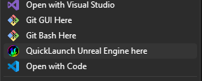 After successfully installing, right-clicking on a folder or an empty area within File Explorer will display it’s context menu. Select QuickLaunch Unreal Engine here to create a new project and launch Unreal Engine.