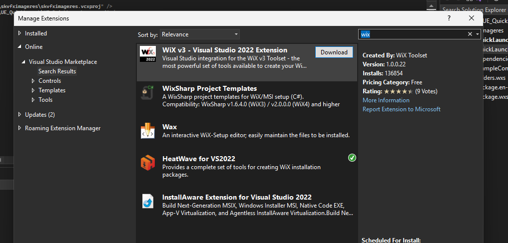 If you load the solution and the installer project comes up as “incompatible” (you’ll get an error on load), just enable the extension, restart, and then right click on the UE_QuickLaunch_installer project, and select “reload project” (or something similar to that).